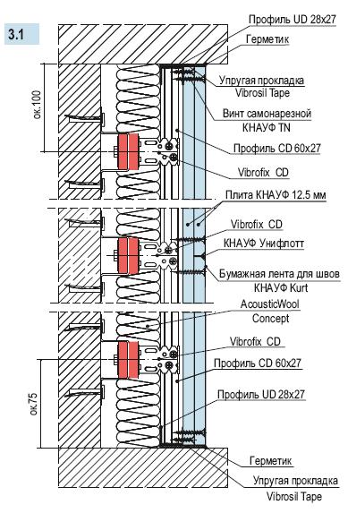 Тем не менее, расшивка стыков ГКЛ со стенами и заполнение силиконовым герметиком в принципе может увеличить ЗИ на средних частотах на 5-8 дБ.